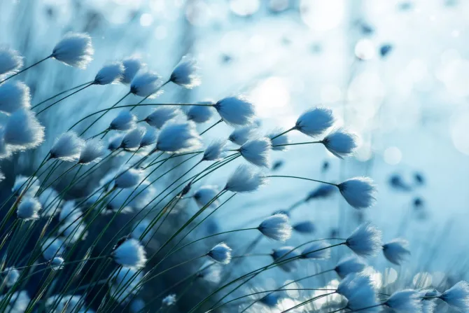 Roślina bawełna w odcieniu niebieskim.