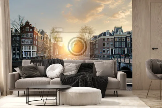 europa, Amsterdam, ulica, drzewo, zachód słońca, wschód słońca, mosty, rowery, słońce