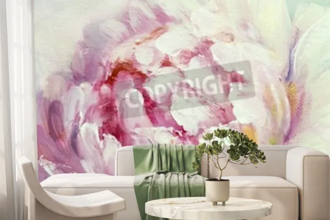 Fototapeta: Różowe i białe piwonie w stylu malarstwa olejnego