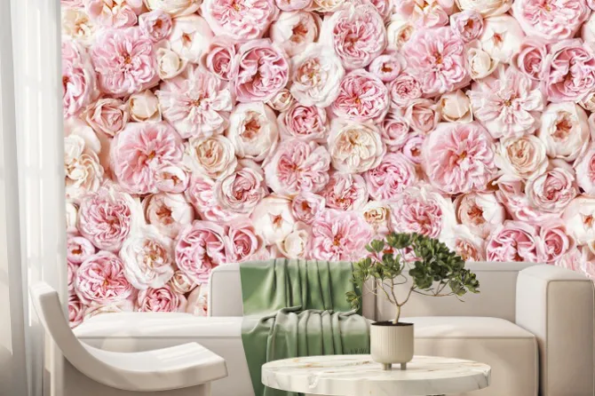 Fototapeta: Różowe pastelowe róże w gęstym układzie