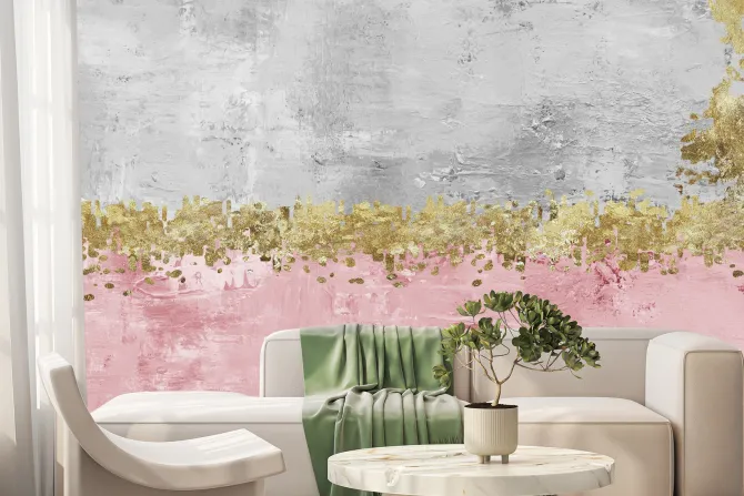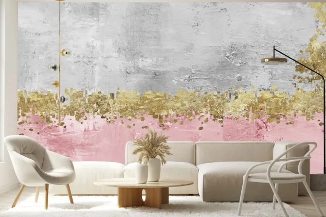 Fototapeta: Różowo-szary beton ze złotym zdobieniem