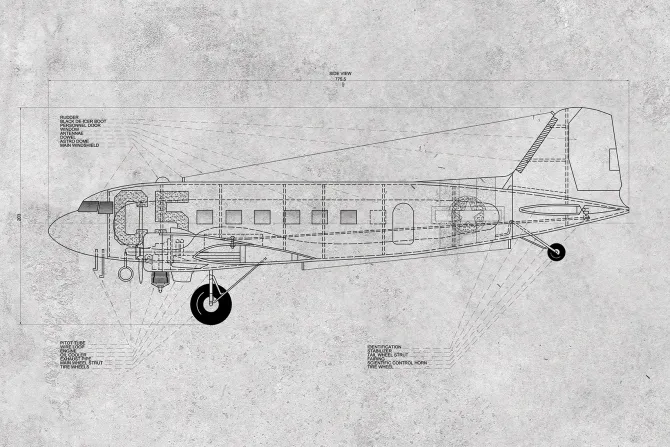 Fototapeta: Rysunek techniczny samolotu na szarym tle z teksturą