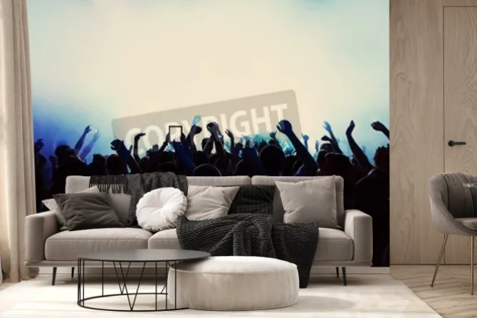 Fototapeta: Silhouettes of a crowd party concert music happy