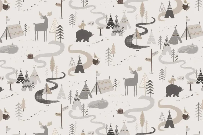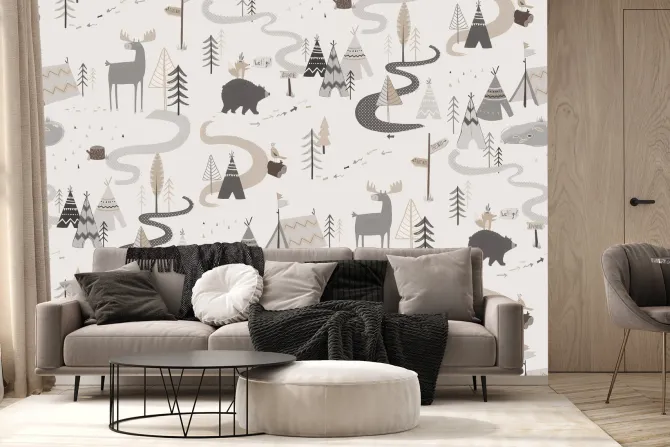 Fototapeta: Skandynawski las z uroczymi zwierzątkami w naturalnych kolorach