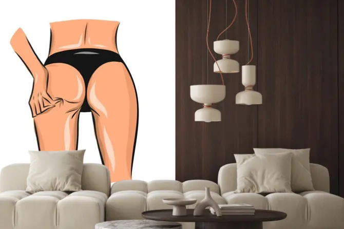 Fototapeta: Sketch line art woman or girl slim body with hand on ass. fashion