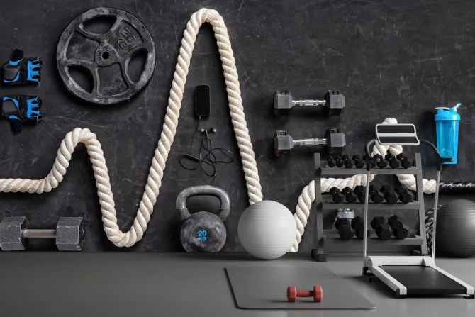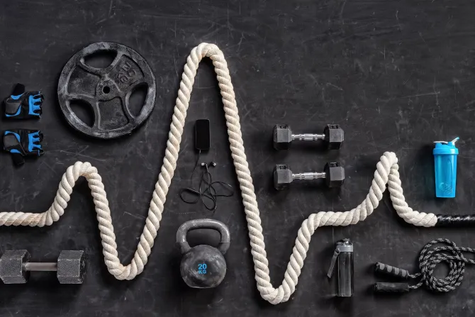 Sprzęt sportowy do ćwiczeń na siłowni.