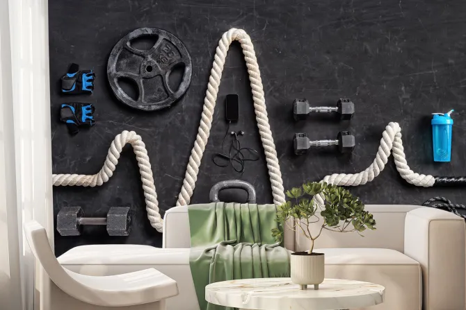 Fototapeta: Sprzęt sportowy do ćwiczeń na siłowni