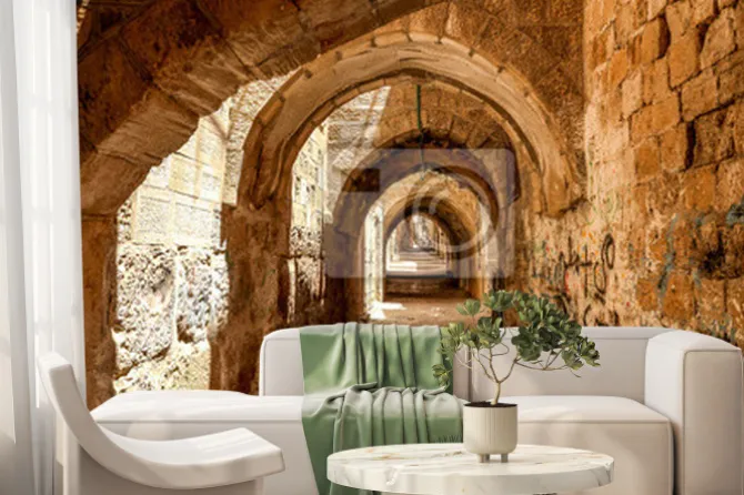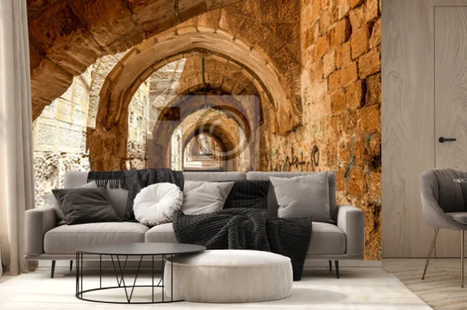Fototapeta: Sreet w jerozolimie aleja starego miasta wykonana z ręcznie zakrzywionych