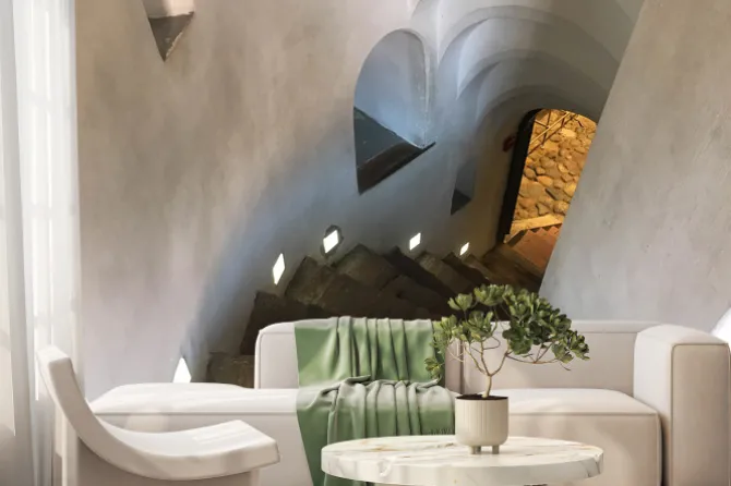 Strome kamienne schody spiralne schodzące ze schodów.