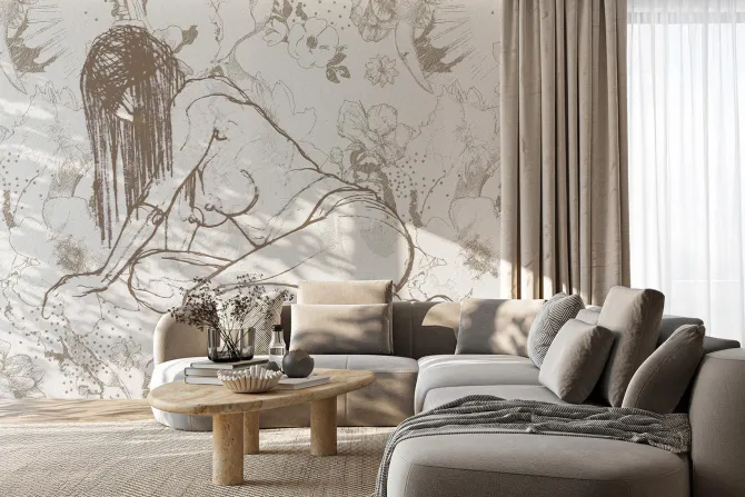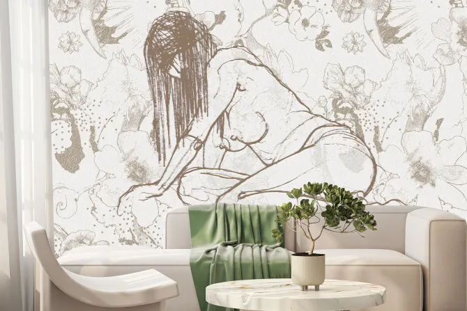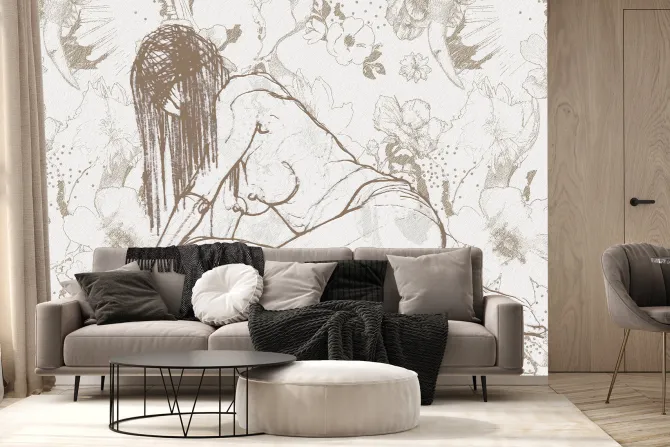 Fototapeta: Szkic ciała kobiety na tle kwiatów