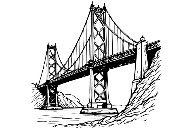 San Francisco, czarno-Białe, góry, jezioro, rzeka, woda, mosty, rysunek, szkic