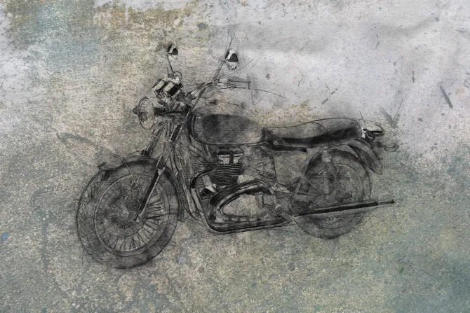 motor, beton, akwarela, szkic, motocyklowe, motocykle
