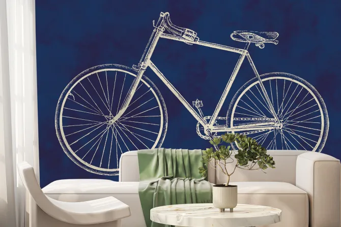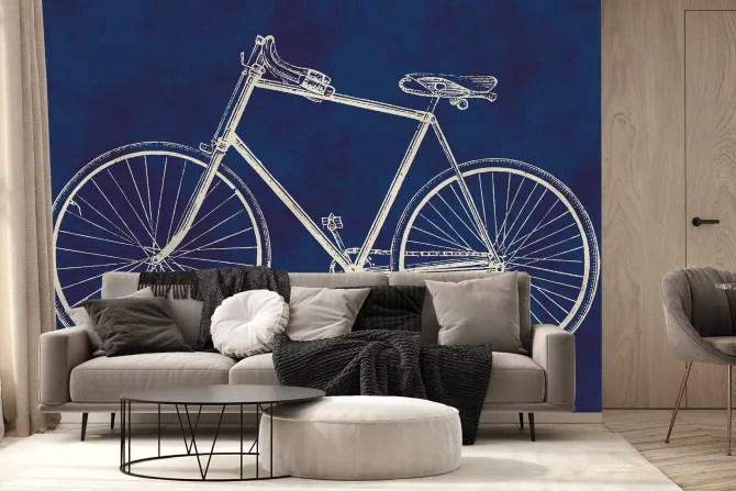 Fototapeta: Szkic retro roweru na niebieskim tle