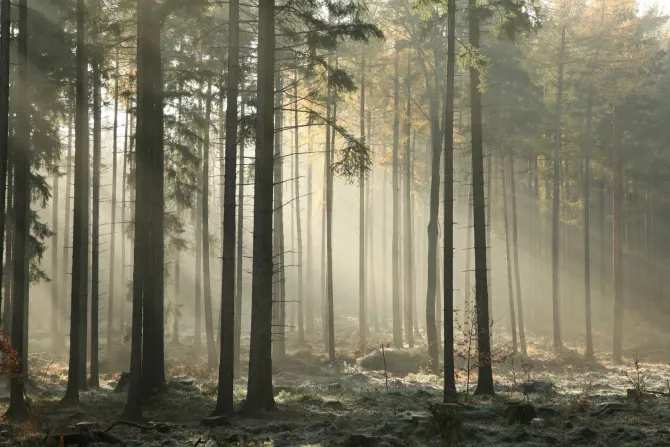 pustynia, Las, mgła, drzewo, wschód słońca, jesień, krajobrazy, widok