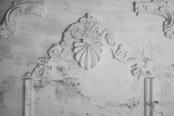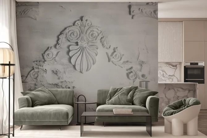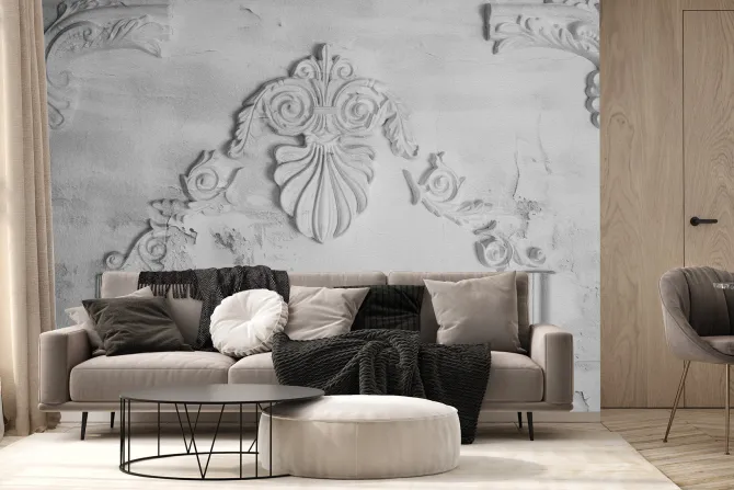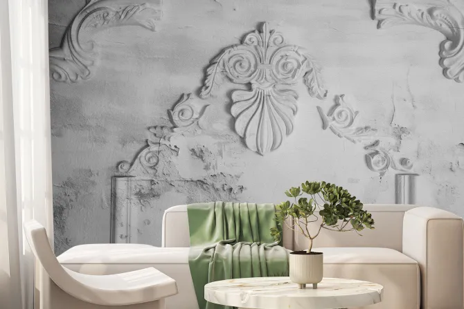 Fototapeta: Sztukateria na pękającym szarym betonie