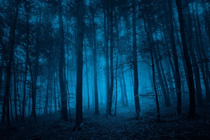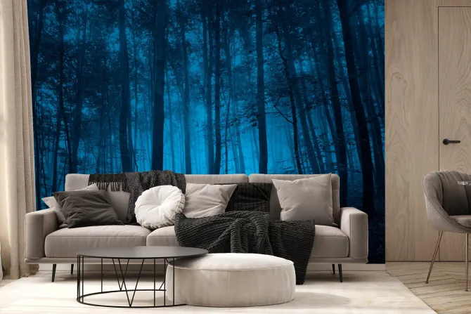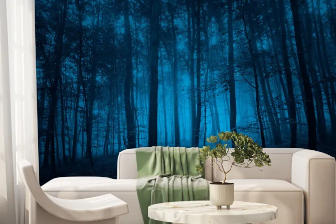 Fototapeta: Tajemniczy las w odcieniach niebieskiego