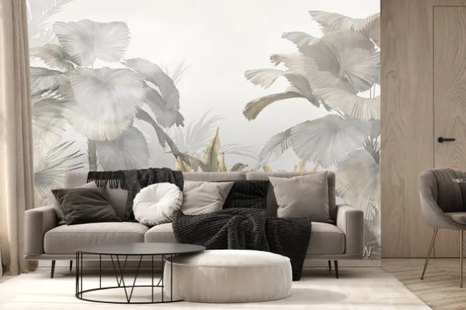 Fototapeta: Tropikalne rośliny i liście w szarościach