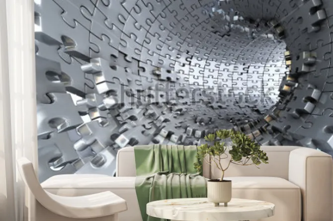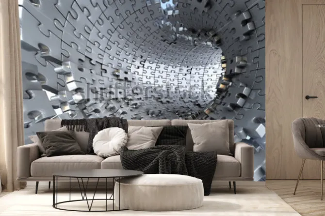 Fototapeta: Tunel z metalowych puzzli z efektem 3d