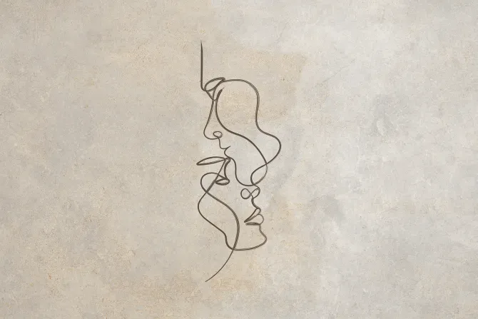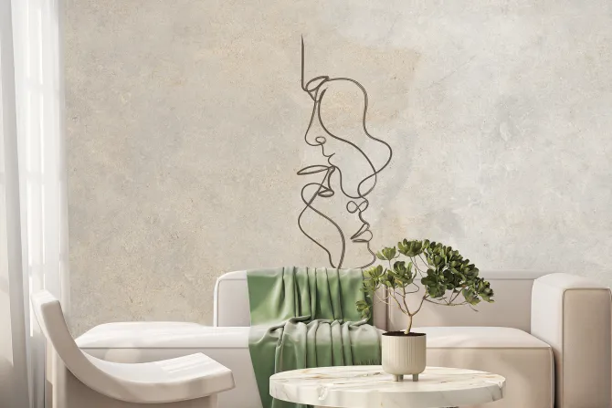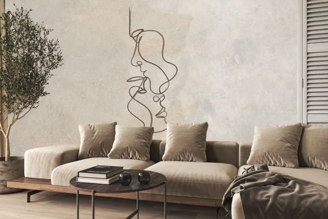 Fototapeta: Twarz kobiety i mężczyzny na beżowym tle