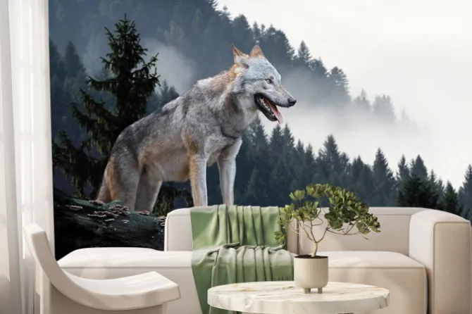 Fototapeta: Wilk obserwujący las z wysokiego punktu