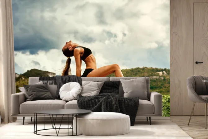 joga, siłownia, sport, góry, zdrowie, rysunek, krajobrazy, lato, kobieta
