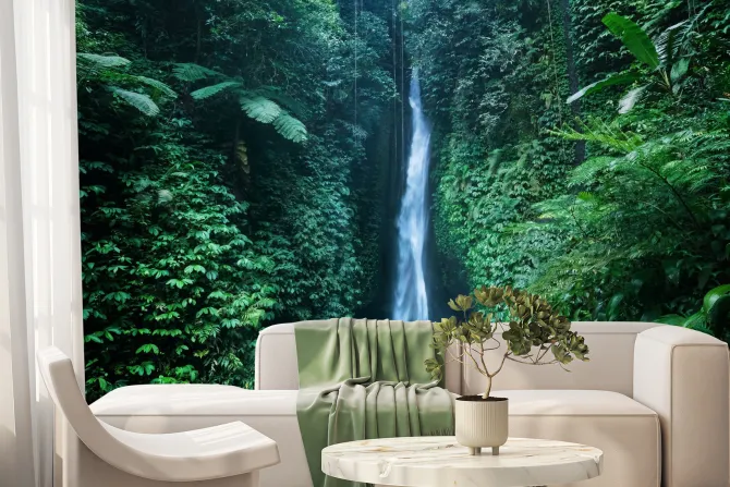 Fototapeta: Wysoki wodospad w tropikalnej dżungli na bali