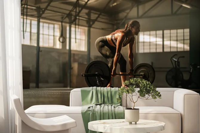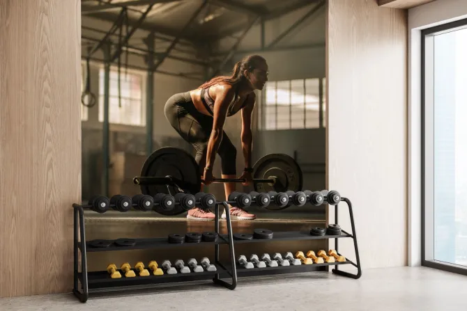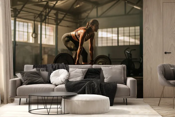 Fototapeta: Wysportowana kobieta podnosząca ciężary