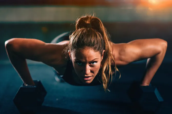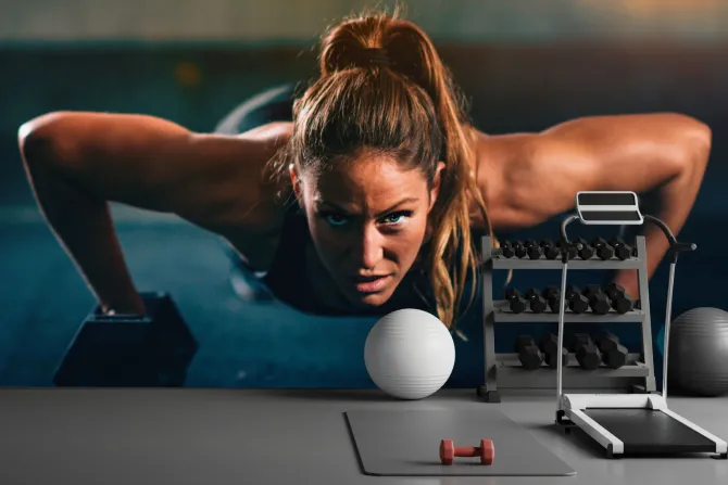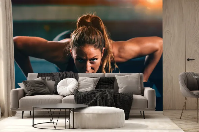 Fototapeta: Wysportowana kobieta robiąca pompki