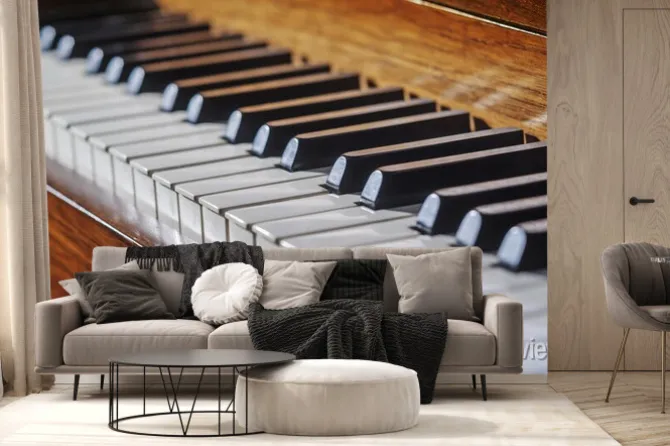 Fototapeta: Zamknij się z klawiatury fortepianu z ograniczoną głębią ostrości