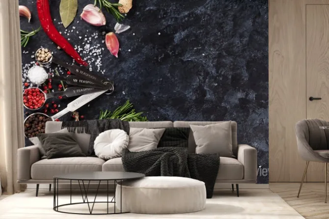 Fototapeta: Zioła i przyprawy na czarnym kamieniu