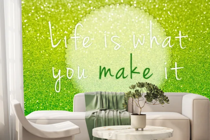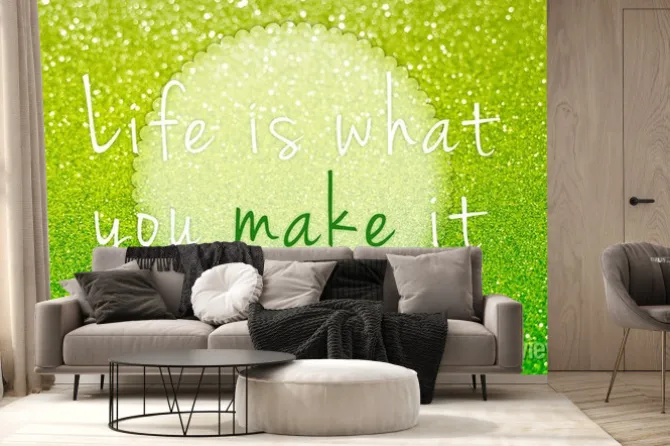 Fototapeta: Życie jest co ty go na zielonym brokatem abstrakcyjnym tle