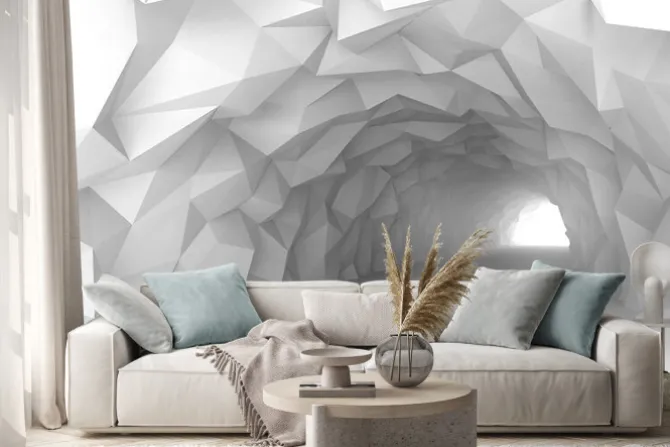 Naklejka: Abstrakcyjne wnętrze tunelu z geometrycznymi ścianami