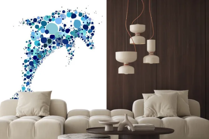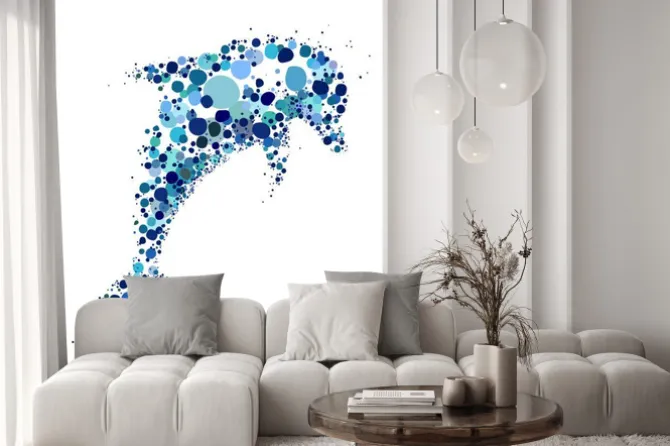 Naklejka: Abstrakcyjny delfin z niebieskich kółek