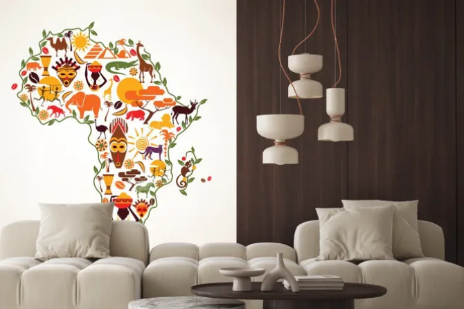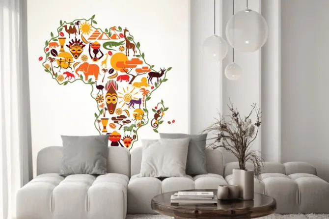 Naklejka: Afryka mapa podróże, decrative symbolem kontynentu afryki z eth