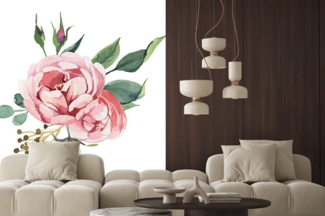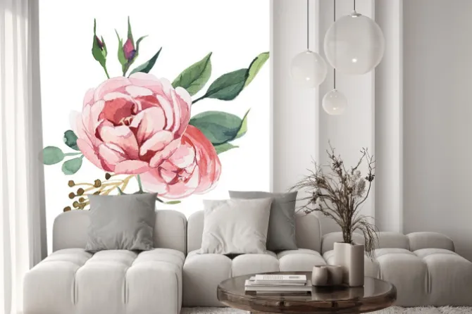 Naklejka: Akwarela bukiet kwiatów piwonii i blosom izolować na białym tle
