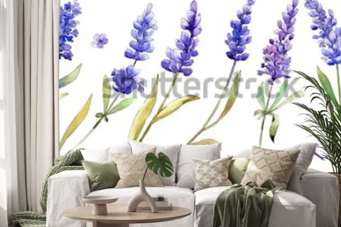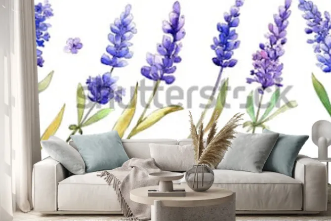 Naklejka: Akwarela fioletowe kwiaty lawendy. kwiatowy kwiat botaniczny.