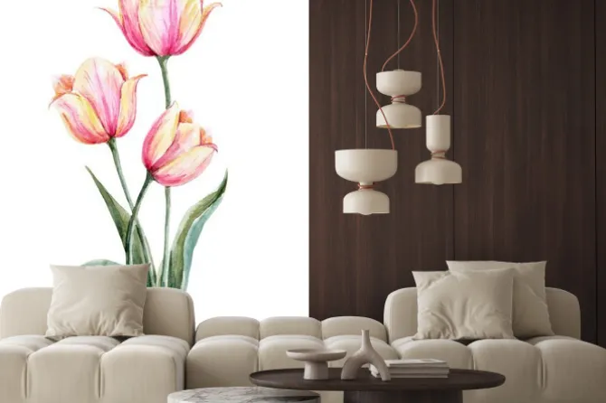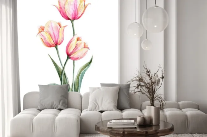 Naklejka: Akwarela różowo-żółty tulipan