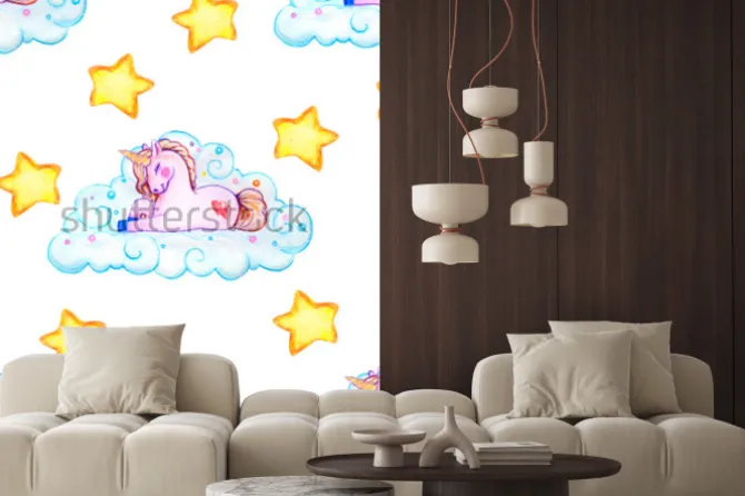 jednorożec, tęcza, konie, gwiazdy, niebo, pokój dziecięcy, wróżka, biały, różowy