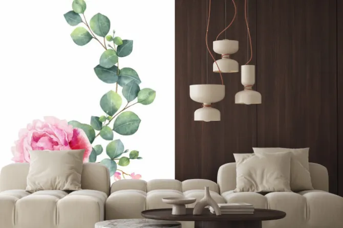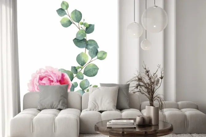 Naklejka: Akwareli wektorowa ręka maluje ilustrację peonia kwiaty i zieleń