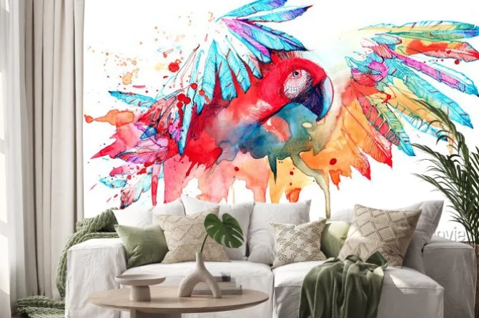 Naklejka: Akwarelowa papuga z rozłożonymi skrzydłami
