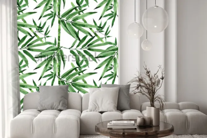 Naklejka: Akwarelowy wzór z liści bambusa