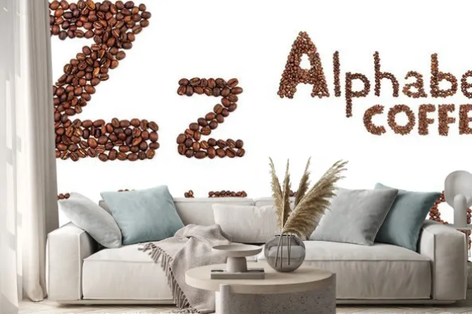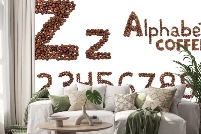 Naklejka: Alfabet z ziaren kawy izolowane