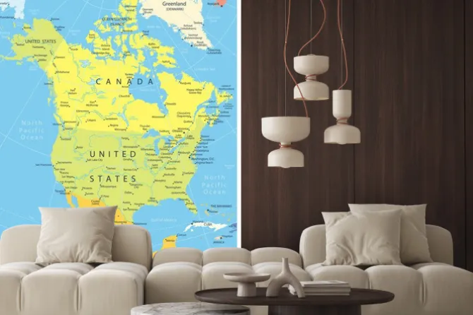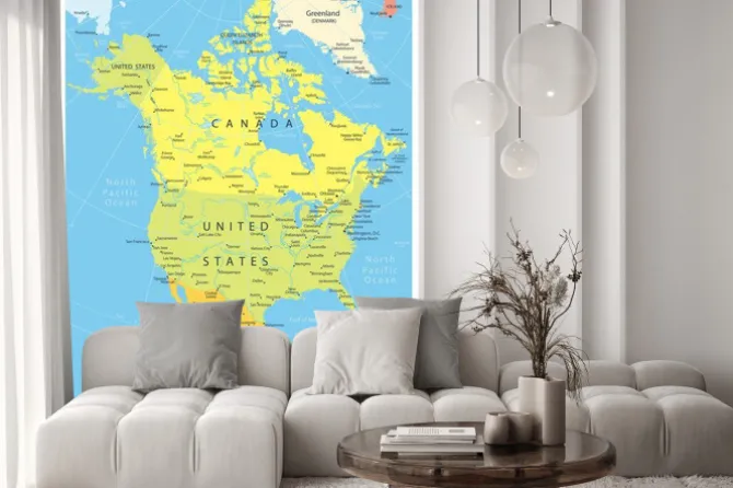 Naklejka: Ameryka północna szczegółowa mapa polityczna z ikonami nawigacji