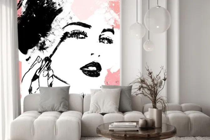 Artystyczna ilustracja kobiety nakładającej makijaż.