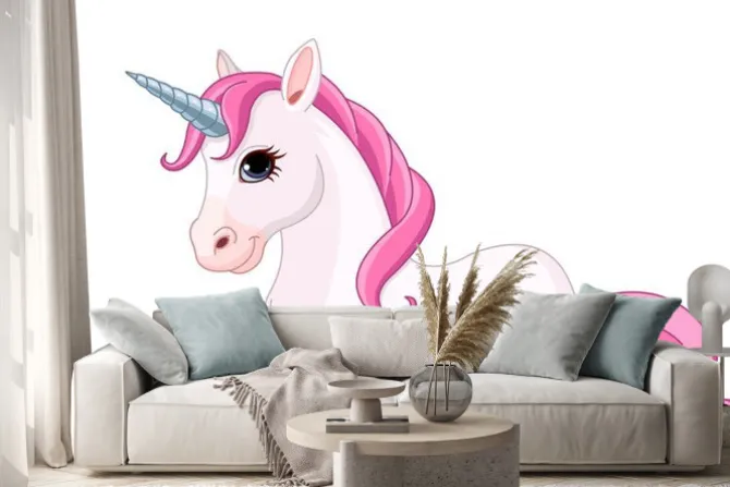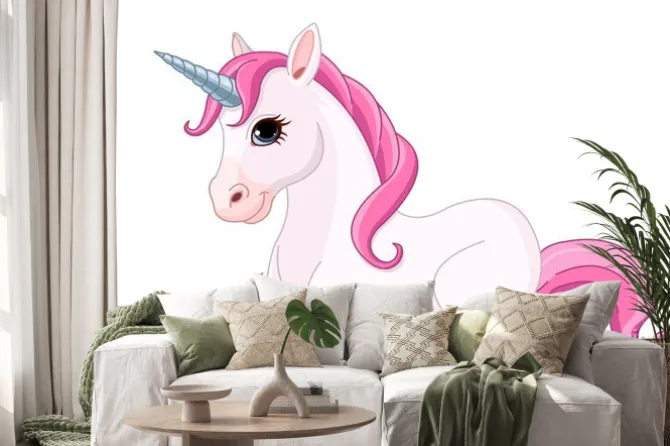 Bajkowy jednorożec z różową grzywą.