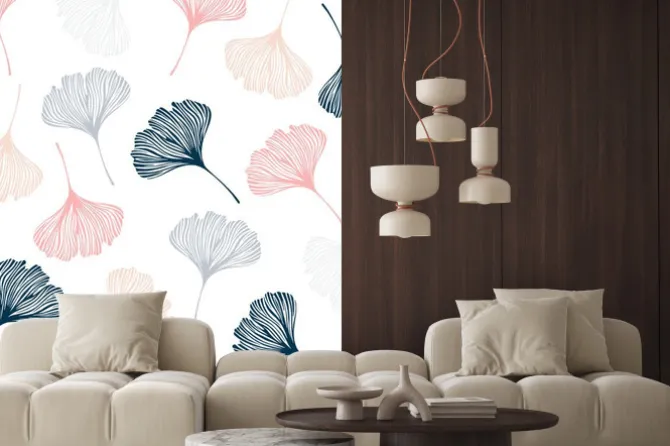 Naklejka: Bezszwowy wzór z ginkgo liśćmi.