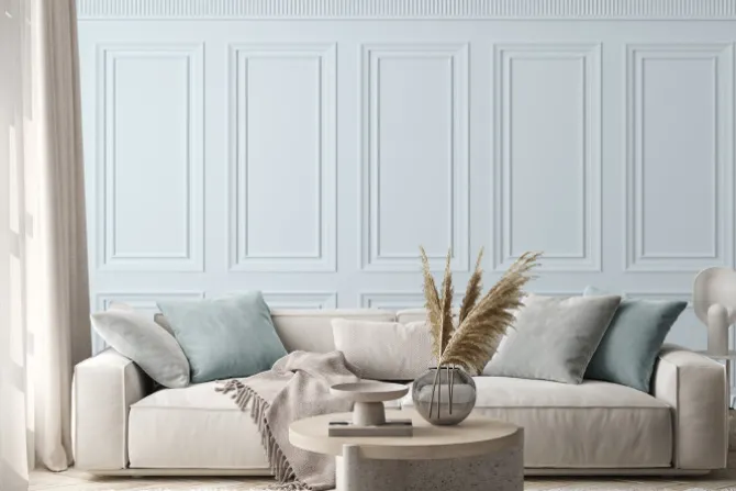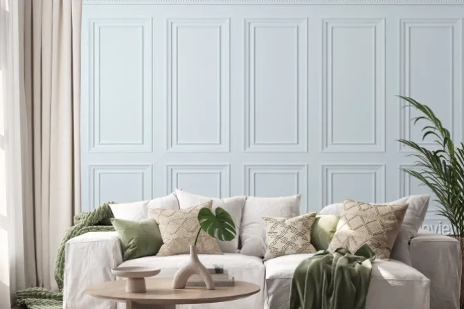 Białe drewniane panele ścienne.