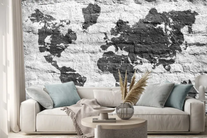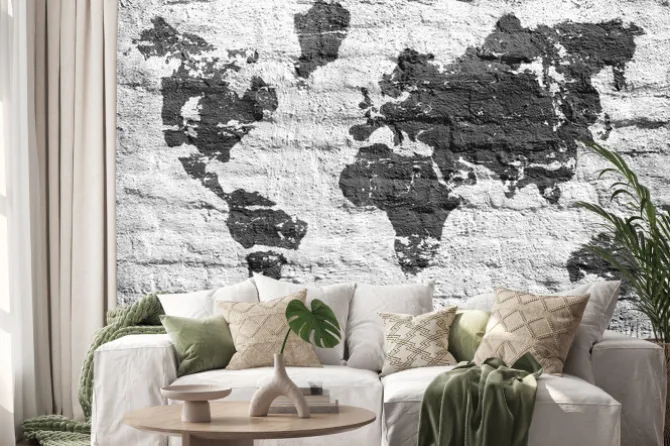Naklejka: Białe ściany i mapa obraz świata