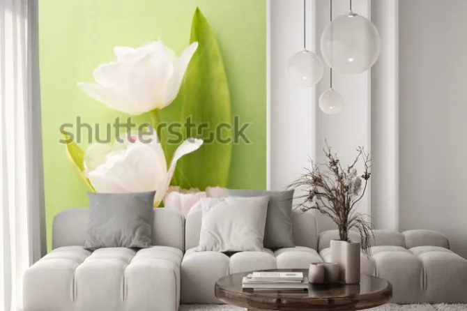 Naklejka: Białe tulipany na zielonym tle