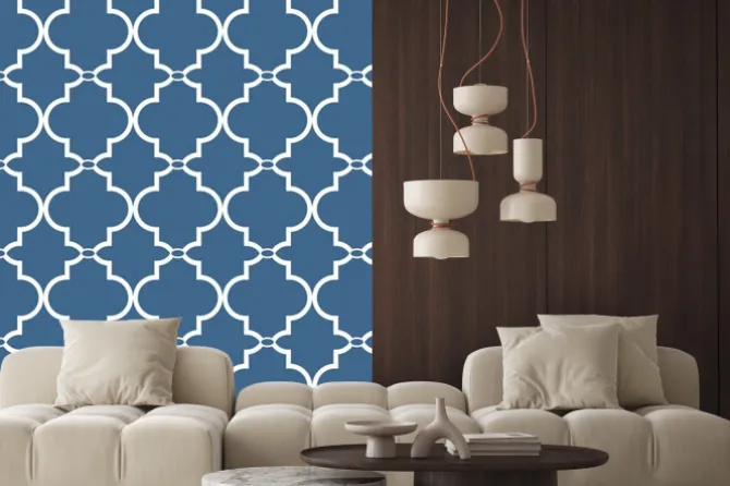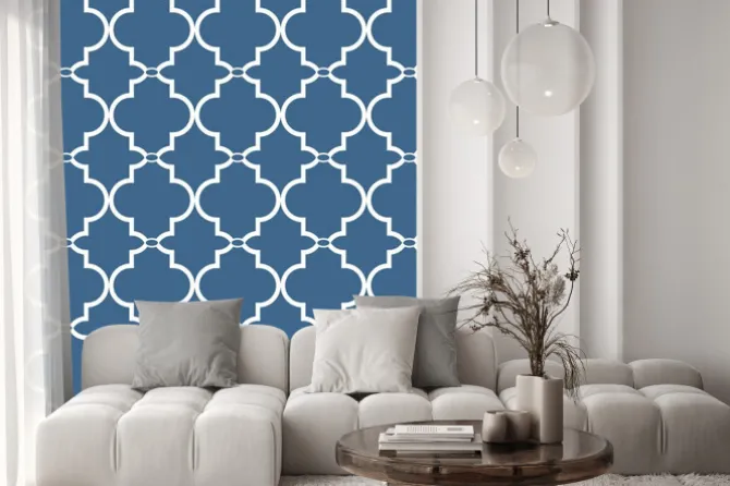 Naklejka: Biały ornament na niebieskim tle